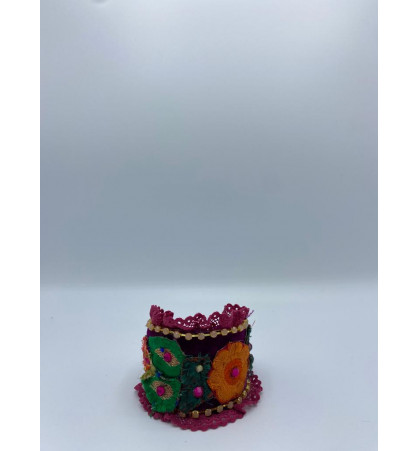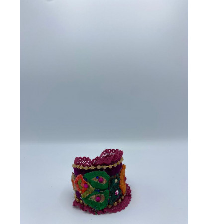 Pulseras tipo esclava, combinación de tela y crochette